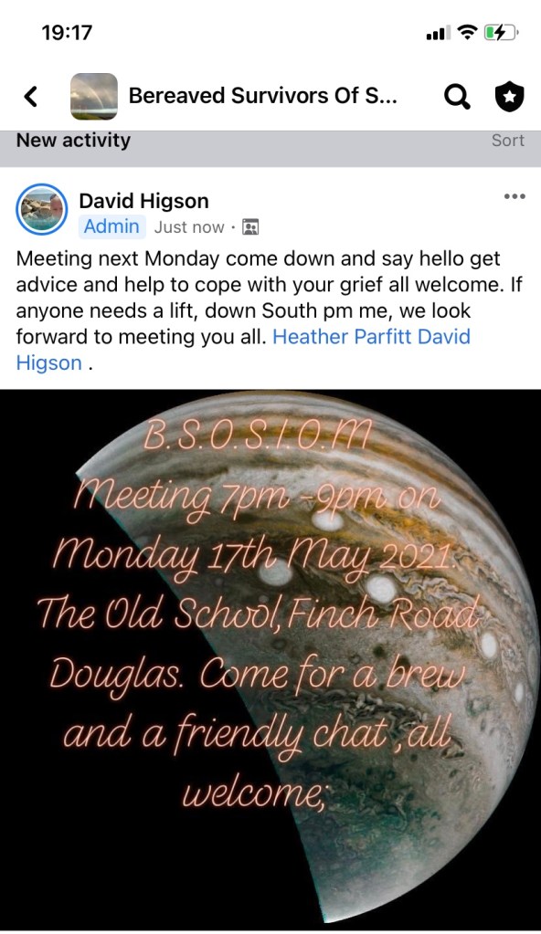 Bereaved Survivors of Suicide meeting 12th February 2024
