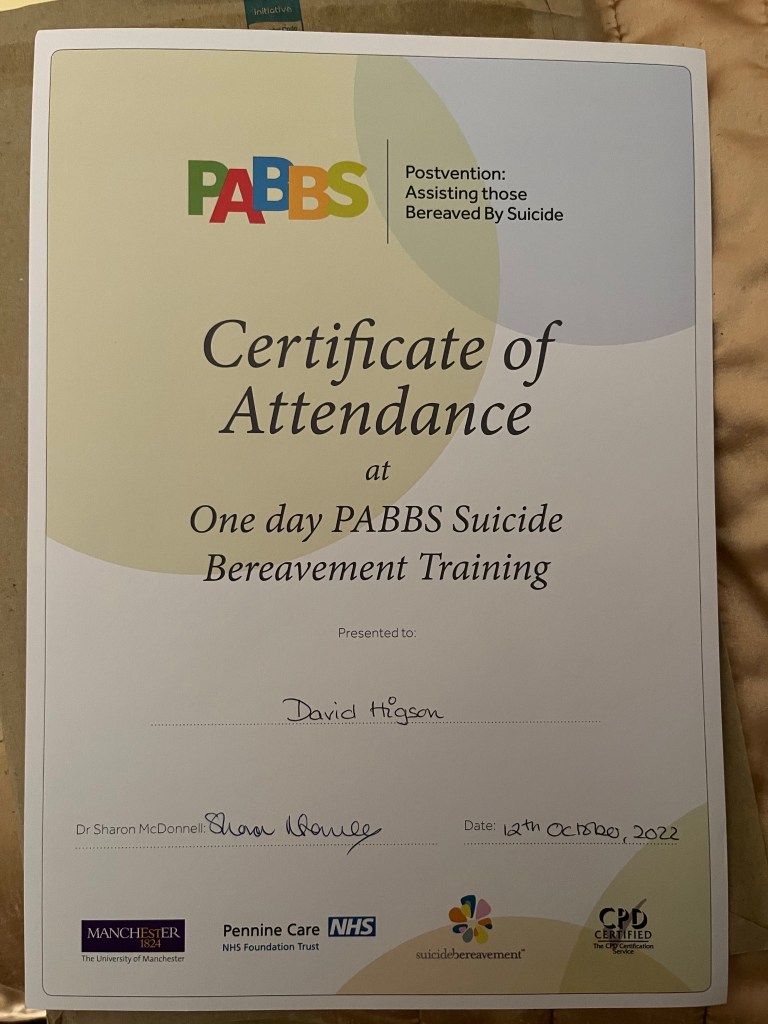 PABBS Training Suicide bereavement uk Dr Sharon McDonnell and Angela Samata , Cruse Isle if Man, evidence based Suicide bereavement postvention training. St Johns Isle of Man https://suicidebereavementuk.com/ Like Loading...