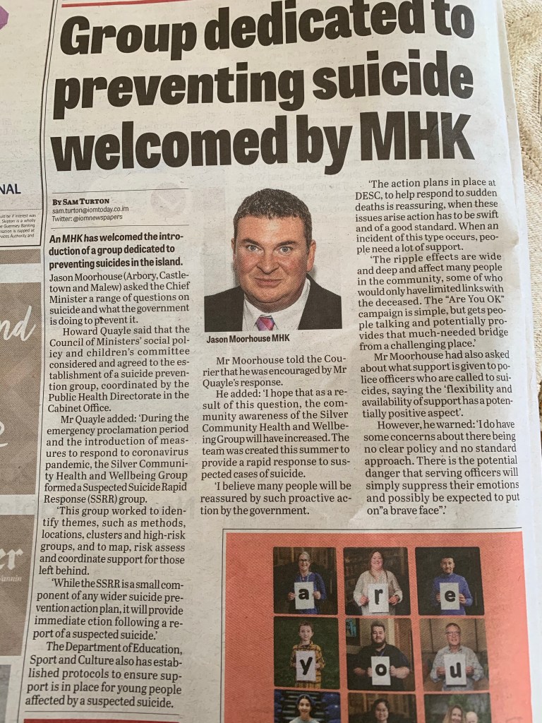 Isle of Man Suicide Strategy in Tynwald 17th May 2023