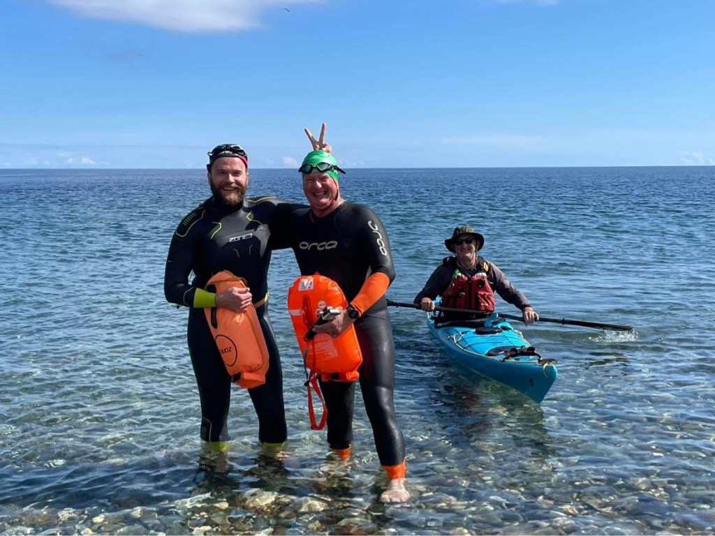 Swim Against Suicide final stage completed Finish in Laxey 16th August 2023 Left Paddy, Neil Kayak support, me Helen, Sean guest swimmers Welcome in Laxey Donation from Michael Staley and Northern dippers. Like Loading...